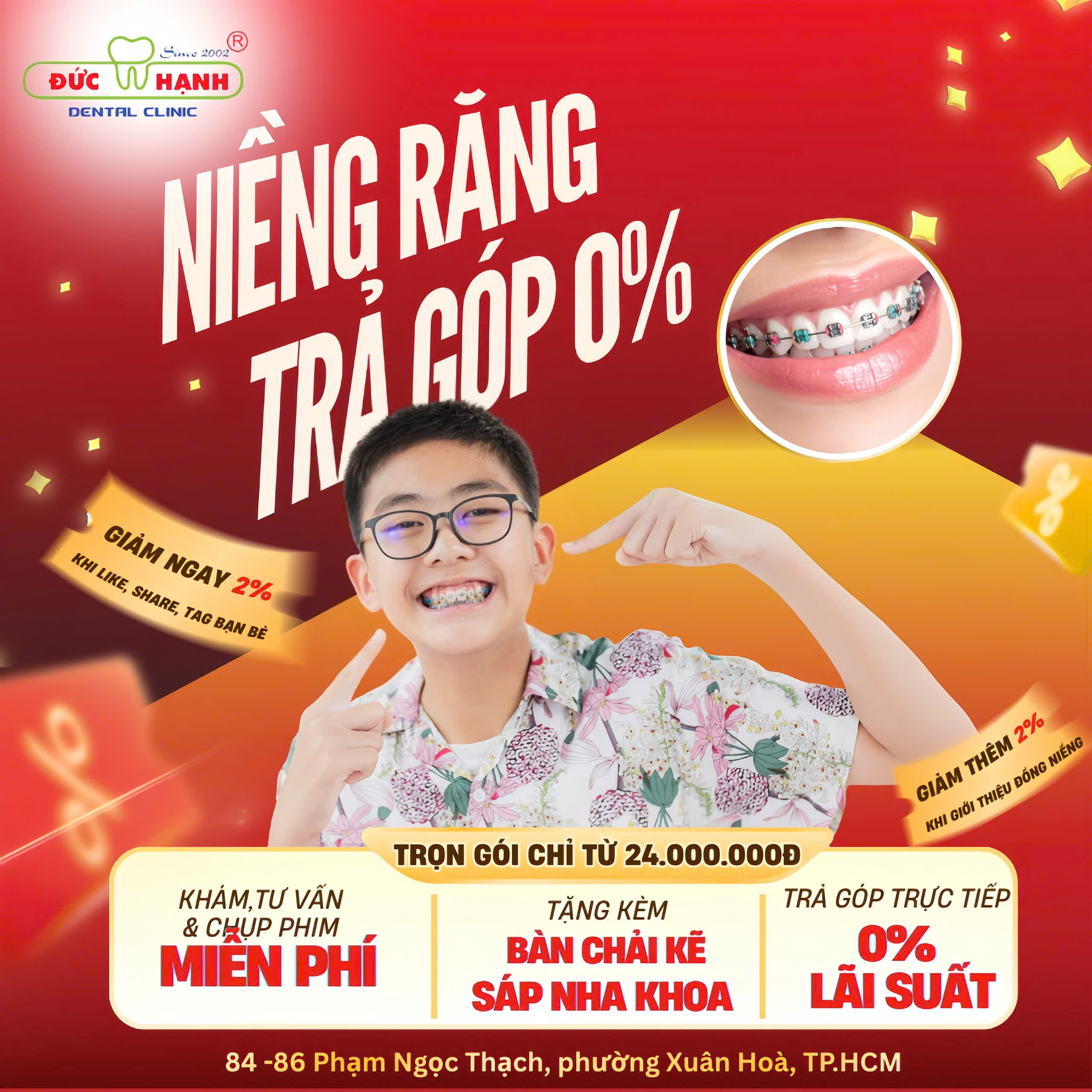Có người cho rằng đây là thời điểm mọi người thường ưu tiên tận hưởng các hoạt động vui chơi, sum họp bên gia đình, và họ không muốn cảm giác khó chịu từ việc niềng răng làm ảnh hưởng đến những dịp như này.Tuy nhiên, xét ở một góc độ khác, đây cũng có thể là dịp lý tưởng để bắt đầu hành trình cải thiện nụ cười, bởi một quyết định đúng đắn ngay đầu năm mới có thể mang lại sự thay đổi tích cực trong suốt cả năm. Cùng Nha khoa Đức Hạnh tìm hiểu thêm để có thể đưa ra quyết định phù hợp nhất nha!